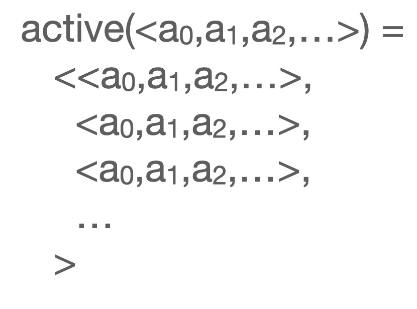 current(<g0,g1,g2,…>) = <<g0,g0,g0,…>,<g1,g1,g1,…>,<g2,g2,g2,…>,…>