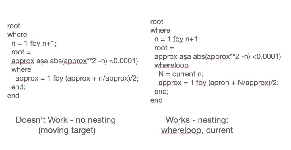 I’d prepared slides about my current efforts to use multiple time dimensions to implement nested loops. However I ran out of time and didn’t use them. I’ll let you puzzle over them.