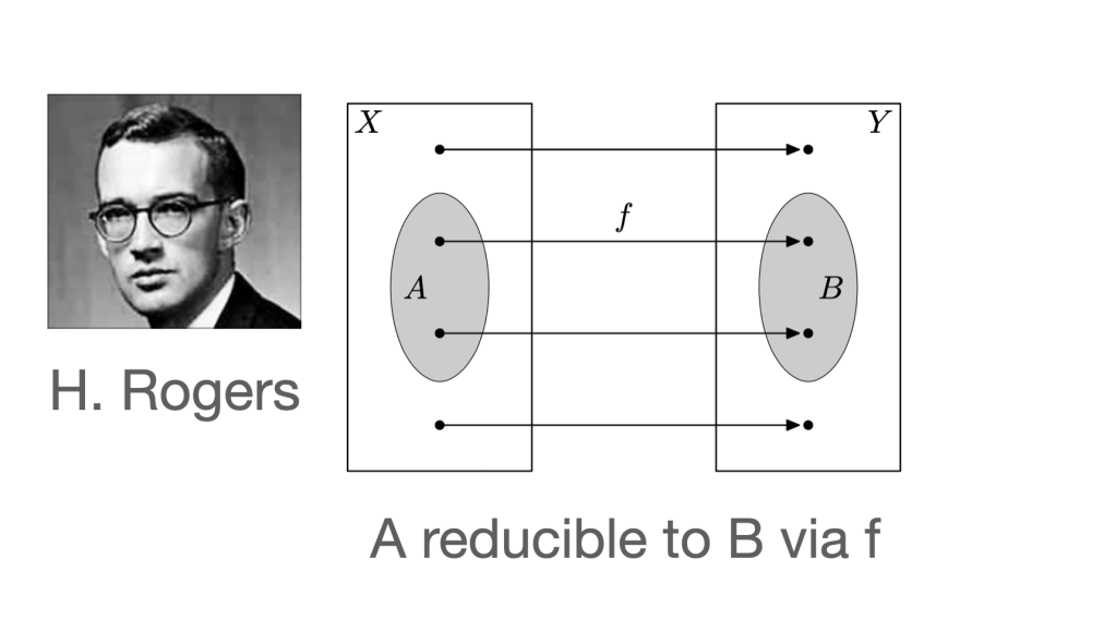 Addison passed on a paper in which Hartley Rogers solved an analogous problem using reducibility by recursive function.