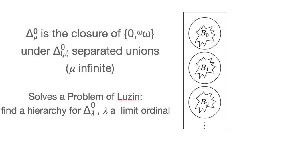 Then I had to solve a problem of Luzin. Luzin was probably stumped because he didn’t know about separated unions (they’re not in his book). Oddly, my proof was purely classical (borrowing ideas from Kuratowski again) and didn’t use games.