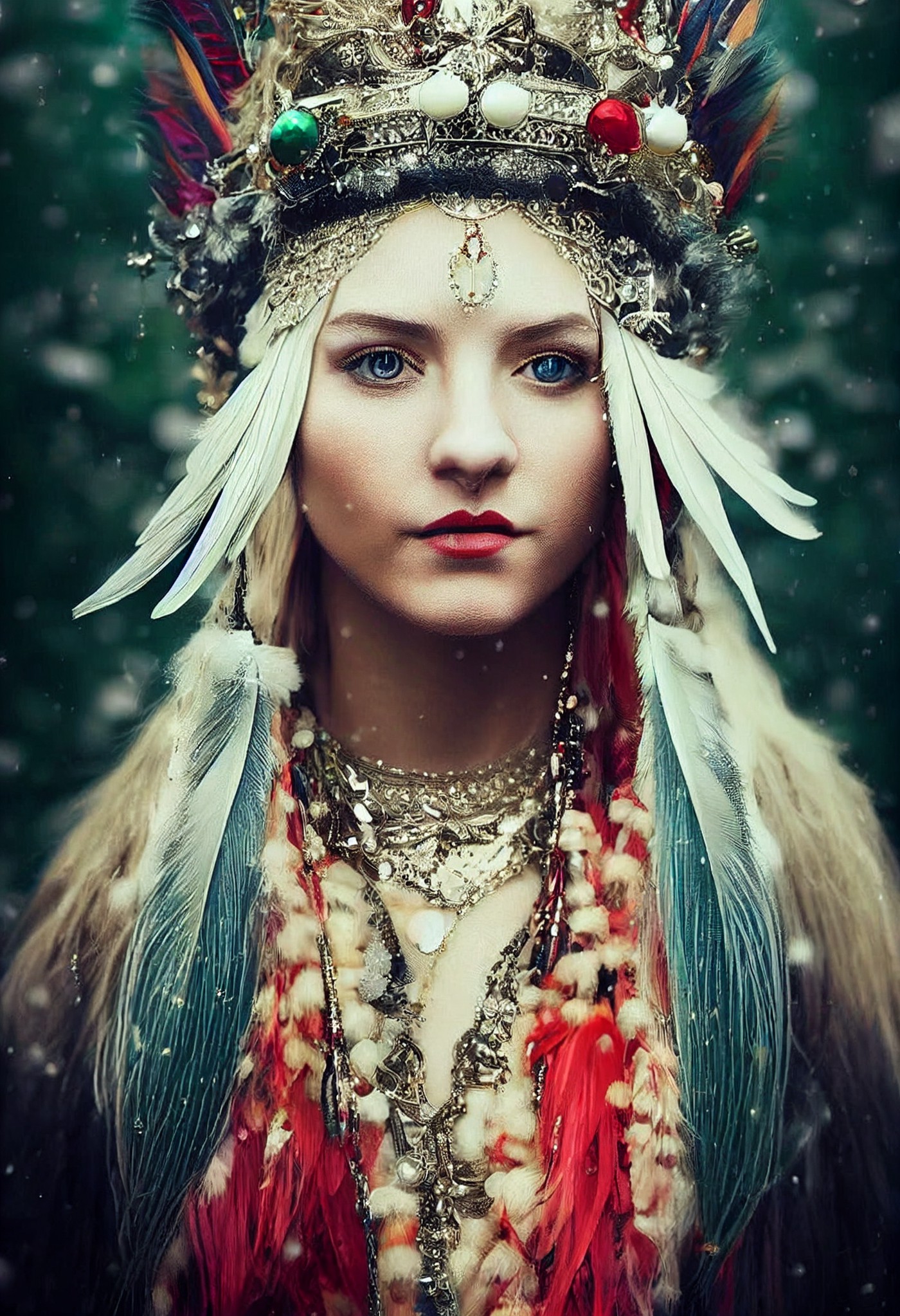 In particular what about the blue feathers on either side of the subject’s neck (they are not mirror images). Where did they come from? Did one of the training images have them?